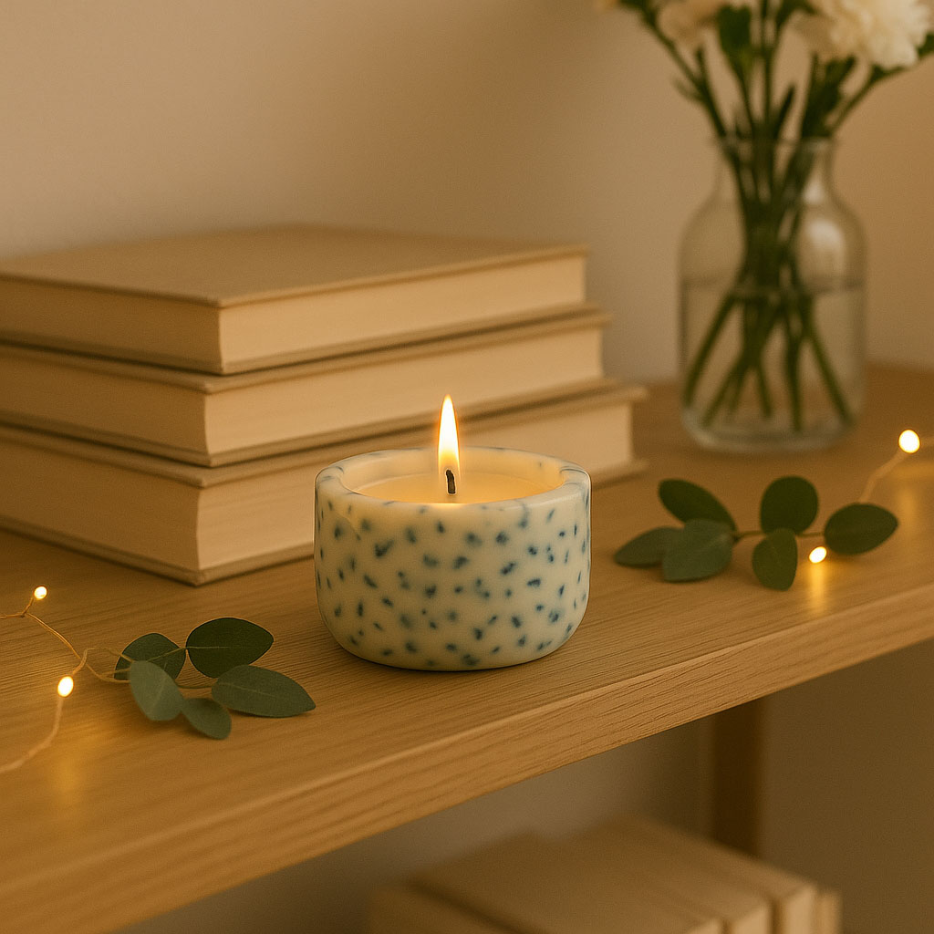 60% восковое масло, 36% гипс, 3% эссенция, 1% хлопок