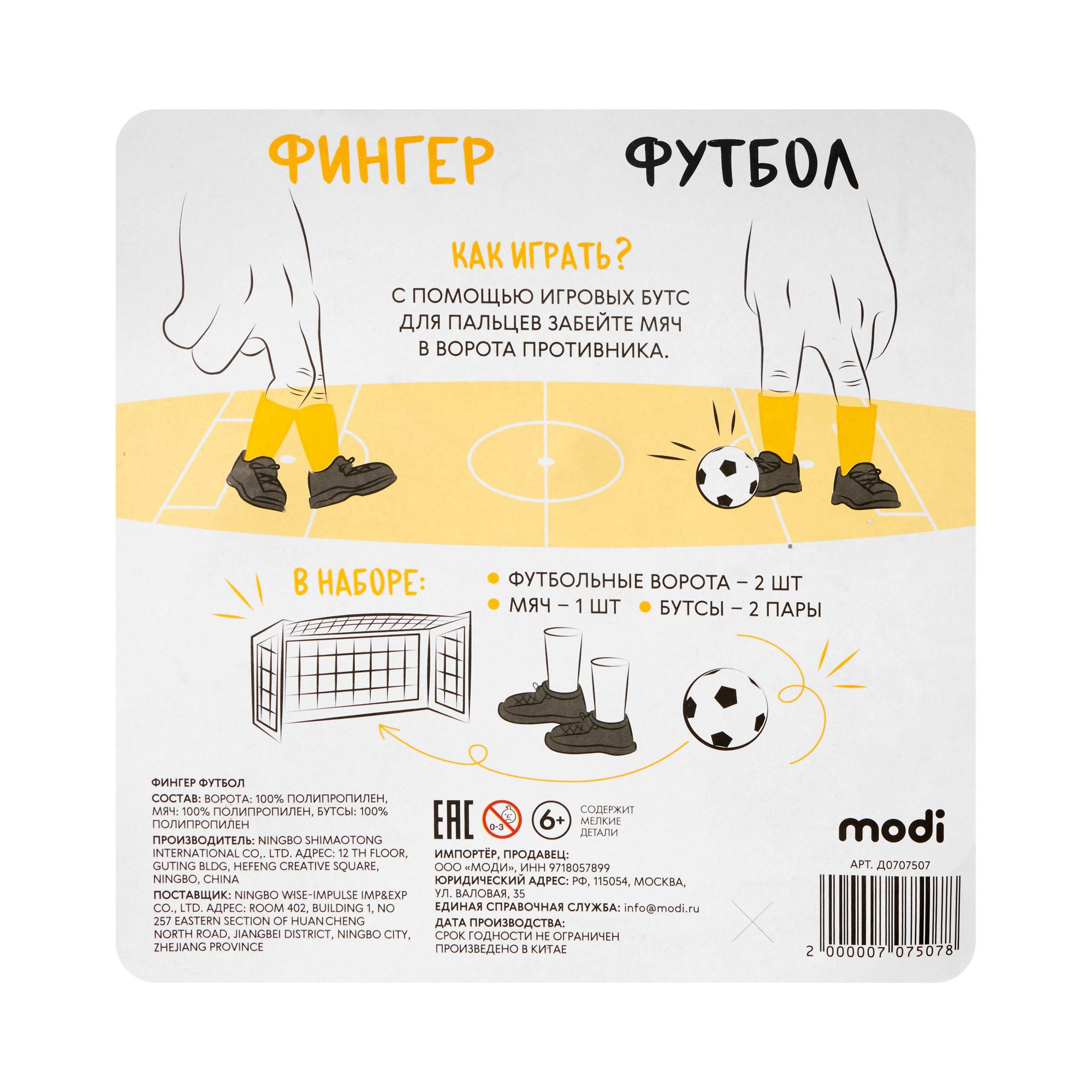 ворота: 100% полипропилен, мяч: 100% полипропилен, бутсы: 100% полипропилен