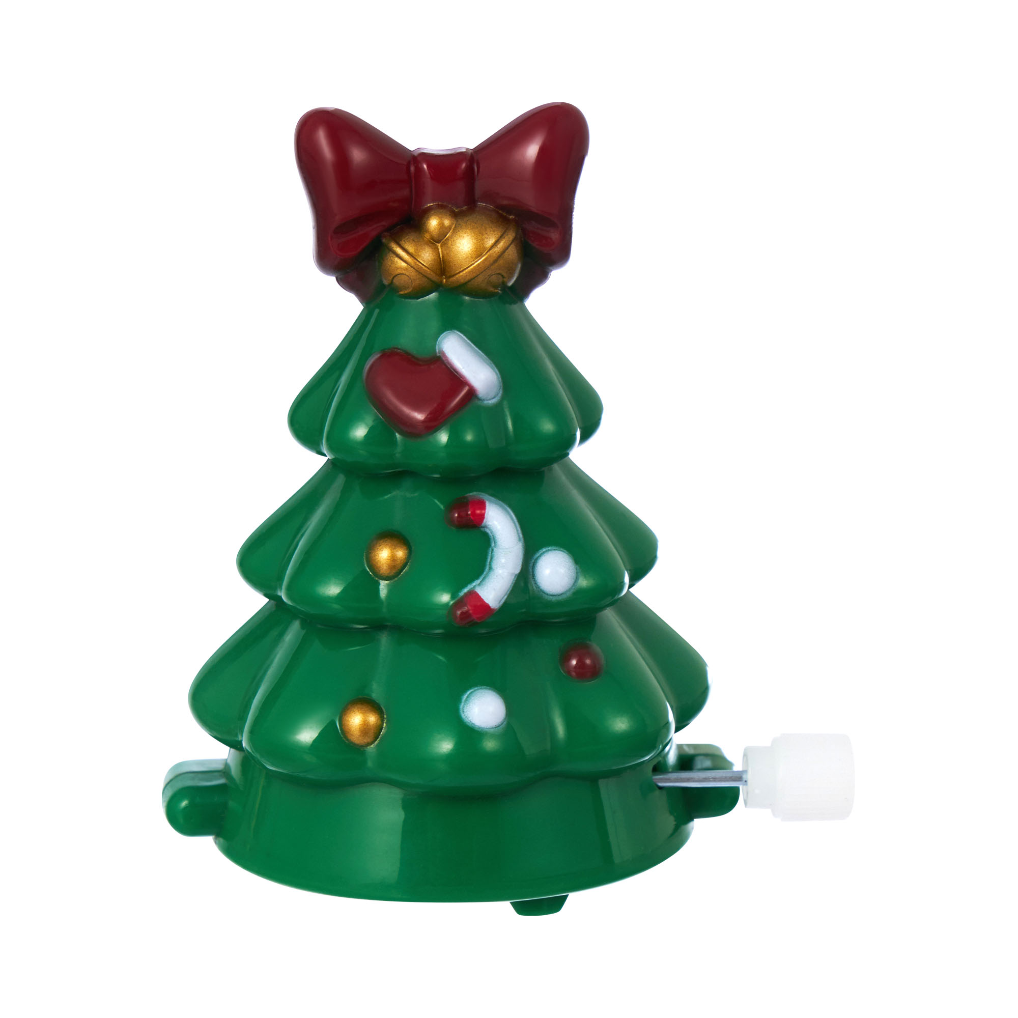 Заводная игрушка в виде зелёной ёлочки оживает от поворота рычажка. Наряженная шариками, рождественским носком и леденцом-тростью, она увенчана звенящими колокольчиками и пышным красным бантом. Механизм приводит ёлочку в движение, создавая праздничное представление. Игрушка станет чудесным украшением стола или подоконника. Заведите свою порцию новогоднего волшебства, порадуйтесь небольшому чуду вместе с детьми!