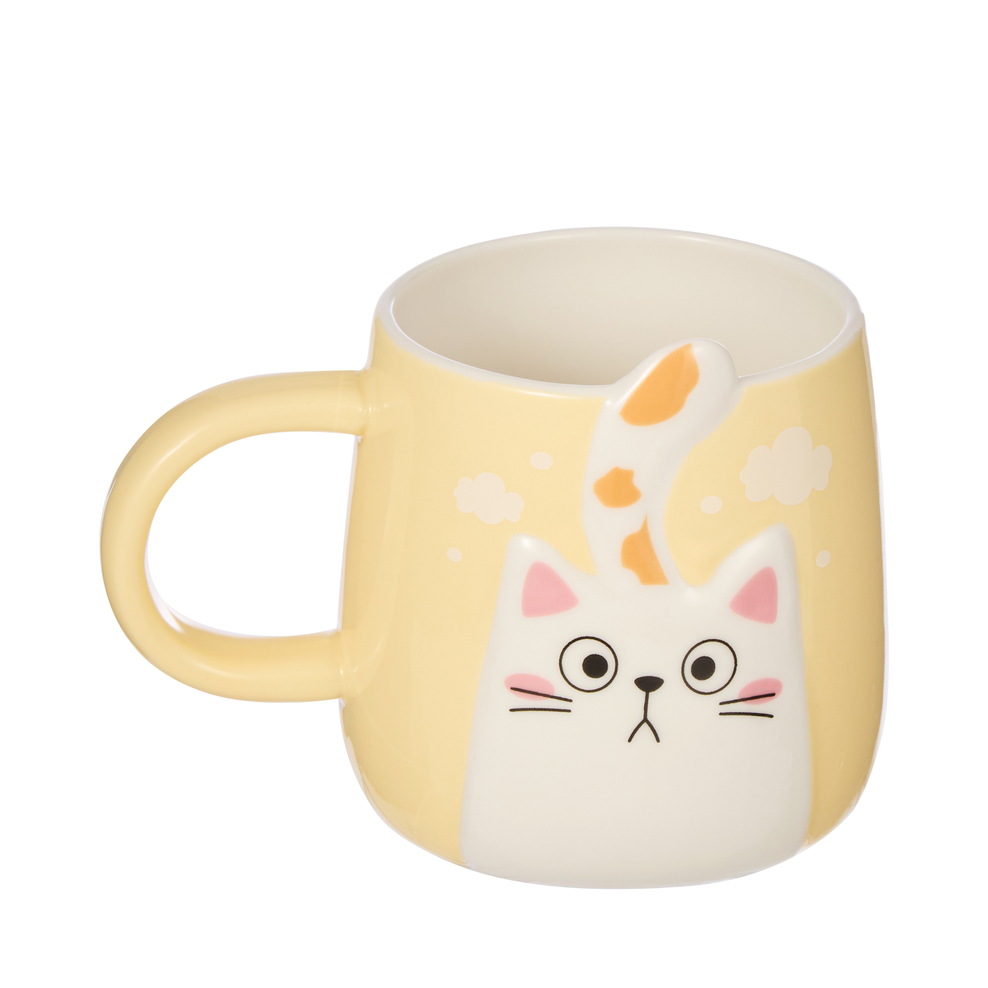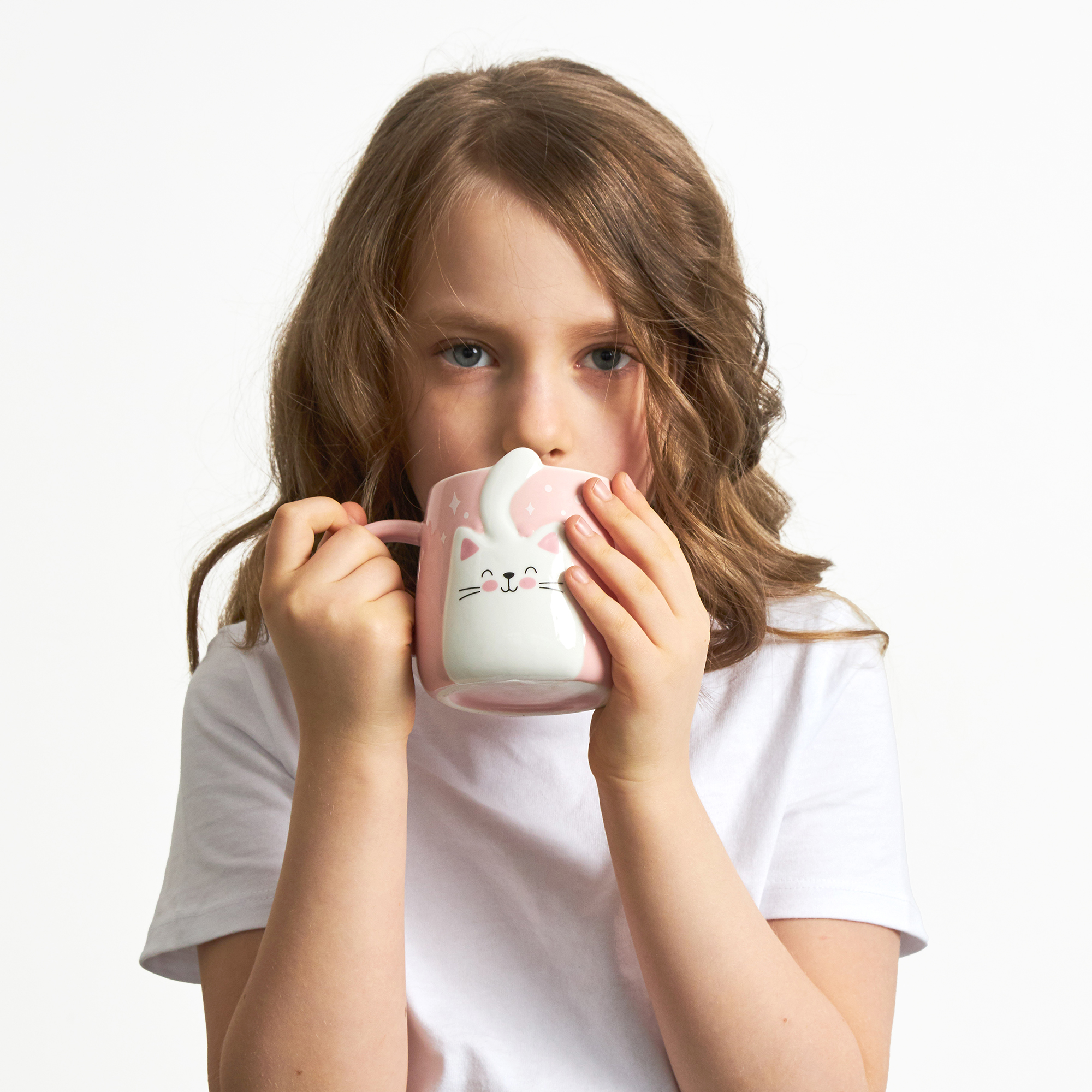 Забавная большая керамическая кружка с изображением симпатичного котика. Изготовлена из обожженной глины, покрыта прочной глазурью. Можно мыть в посудомоечной машине.Оригинальный дизайн с котиком обязательно понравится детям. Большая чашка станет самой любимой.