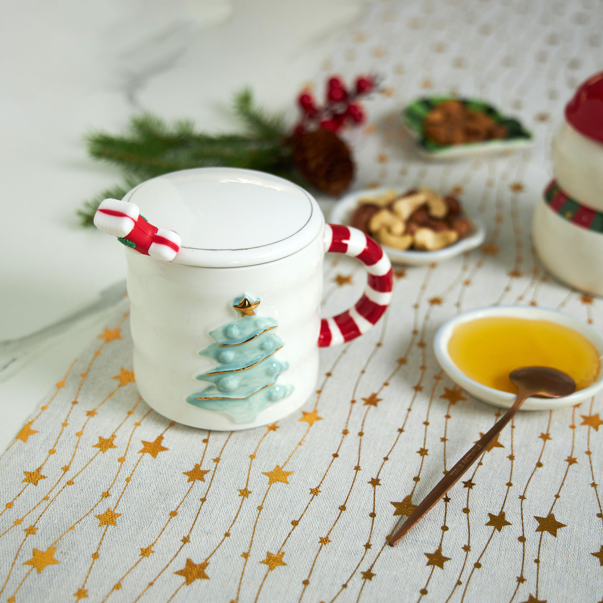 Праздничная кружка с рельефной ёлочкой и полосатым леденцом-ручкой — сказочное воплощение новогодних чаепитий. Крышка с отверстием для ложечки сохраняет тепло и аромат напитков. Объём 380 мл подходит для какао с зефирками или пряного чая с мёдом. Выпуклый узор создаёт особое тактильное удовольствие, а дизайн леденца пробуждает самые тёплые воспоминания о детских праздниках. Такая кружка превратит каждое чаепитие в маленькое торжество и станет источником радости для всей семьи.