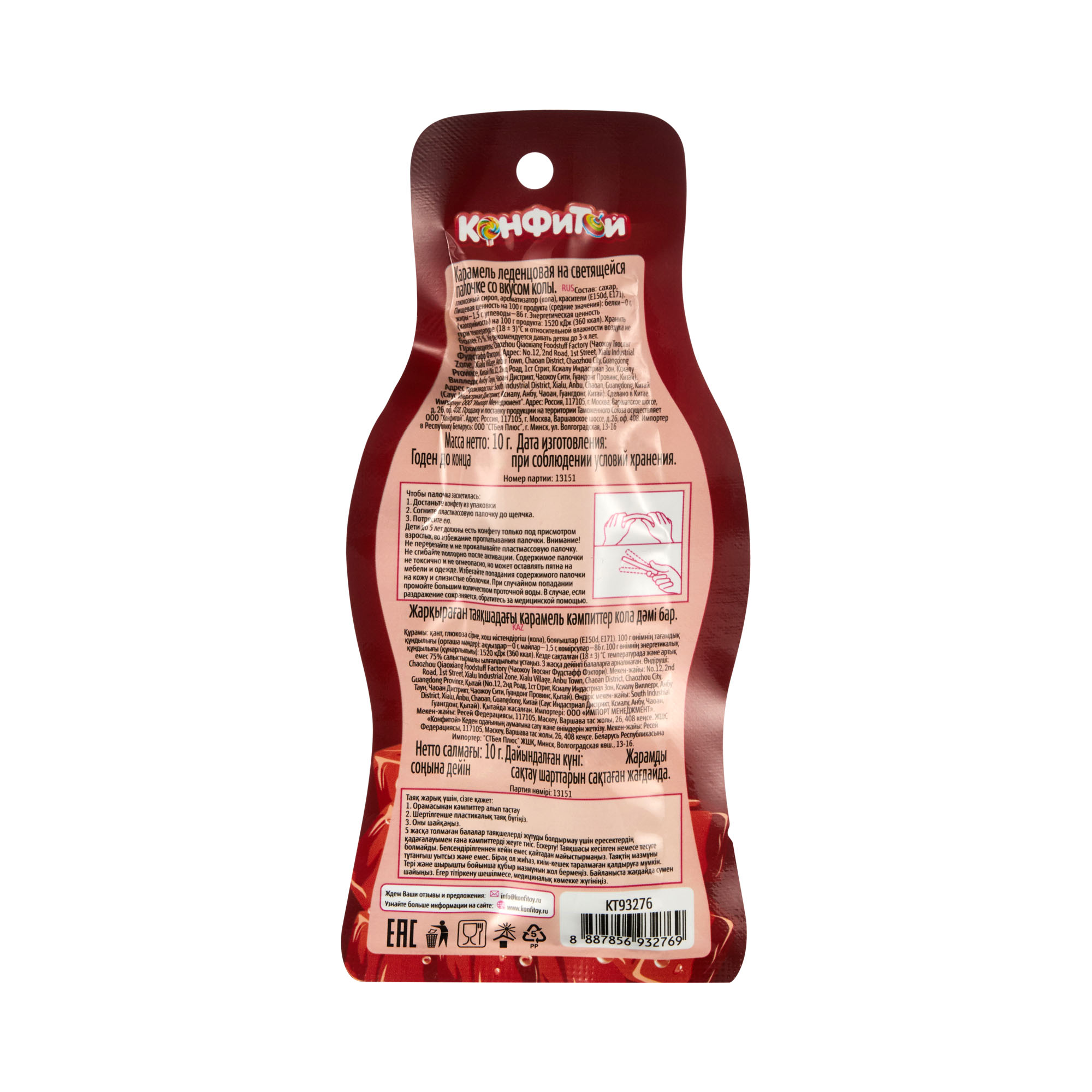 сахар, глюкозный сироп, ароматизатор (кола), красители (Е150d, Е171).
