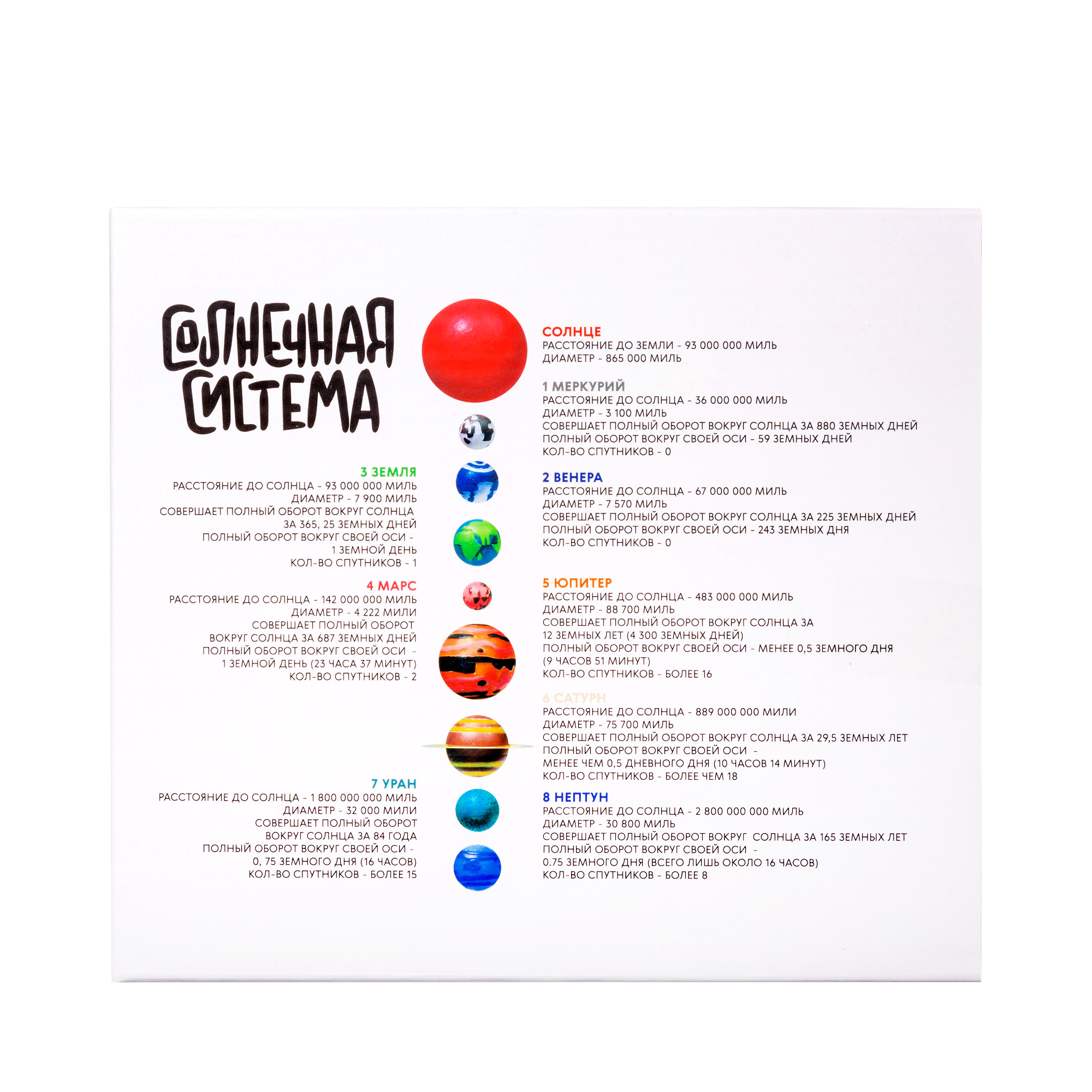 Наглядно 3Д модель солнечной системы демонстрирует строение и взаиморасположение небесных тел, вращающихся вокруг центральной звезды — Солнца. Эта образовательная игрушка поможет ребенку познакомиться с устройством нашей солнечной системы, запомнить названия и порядок расположения планет. Модель развивает астрономическую любознательность, пространственное мышление и воображение. Идеальна для юных исследователей космоса.
