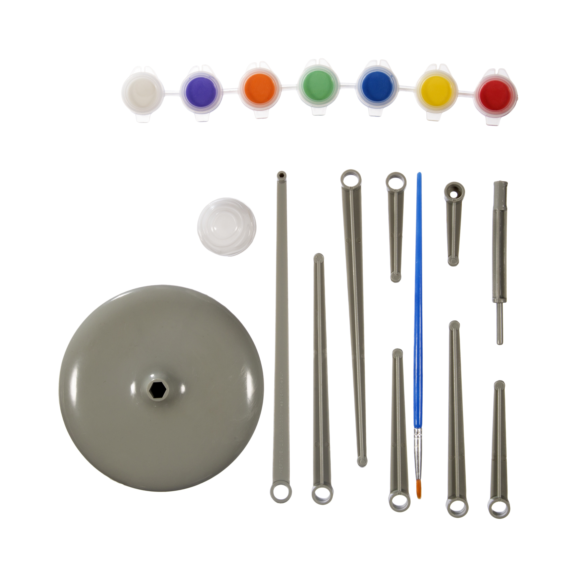 95% пластик, 5% железо; краски: вода 35%, персиковая камедь 20%, карбонат кальция 25%, пигмент 15%, триатаноламин 5%; кисть: 90% полистирол, 5% железо, 5% нейлон
