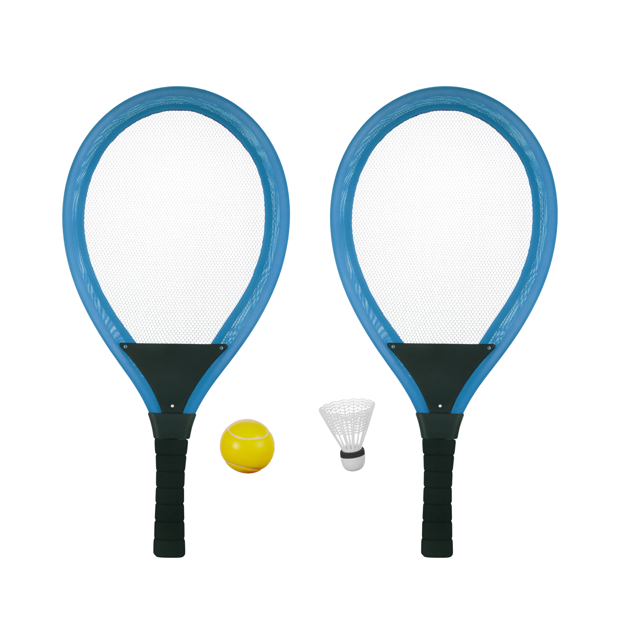 Универсальный набор для игры в бадминтон и теннис подходит для активного отдыха на природе, в парке или на даче. В комплект входят две легкие ракетки с удобными рукоятками и сетчатой поверхностью. Прочные ракетки подойдут как для бадминтона, так и для настольного или большого тенниса. В комплекте есть специальный мяч и воланчик. В продаже наборы из синих или красных ракеток. Игровой комплект отлично подойдет для детей и взрослых, позволит весело и с пользой провести время на свежем воздухе.