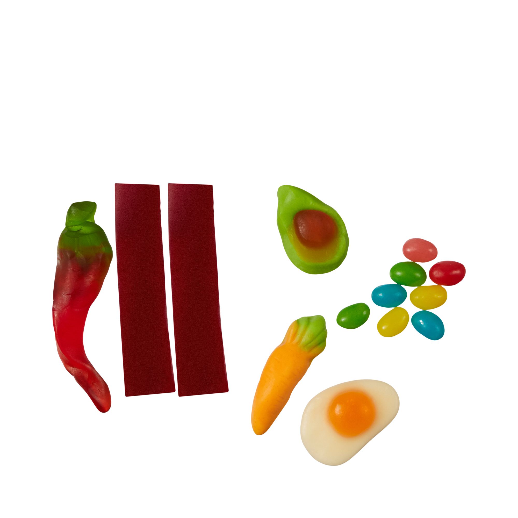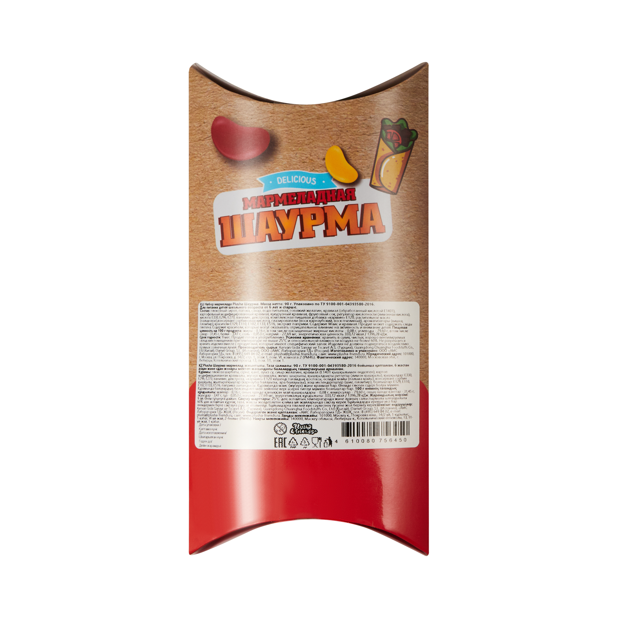 глюкозный сироп, патока, сахар, вода питьевая, говяжий желатин, крахмал (обработанный кислотой Е1401), картофельный модифицированный крахмал, кукурузный крахмал, фруктовый сок, регулятор кислотности (лимонная кислота),кислота: Е330, Е296, Е270, ванил