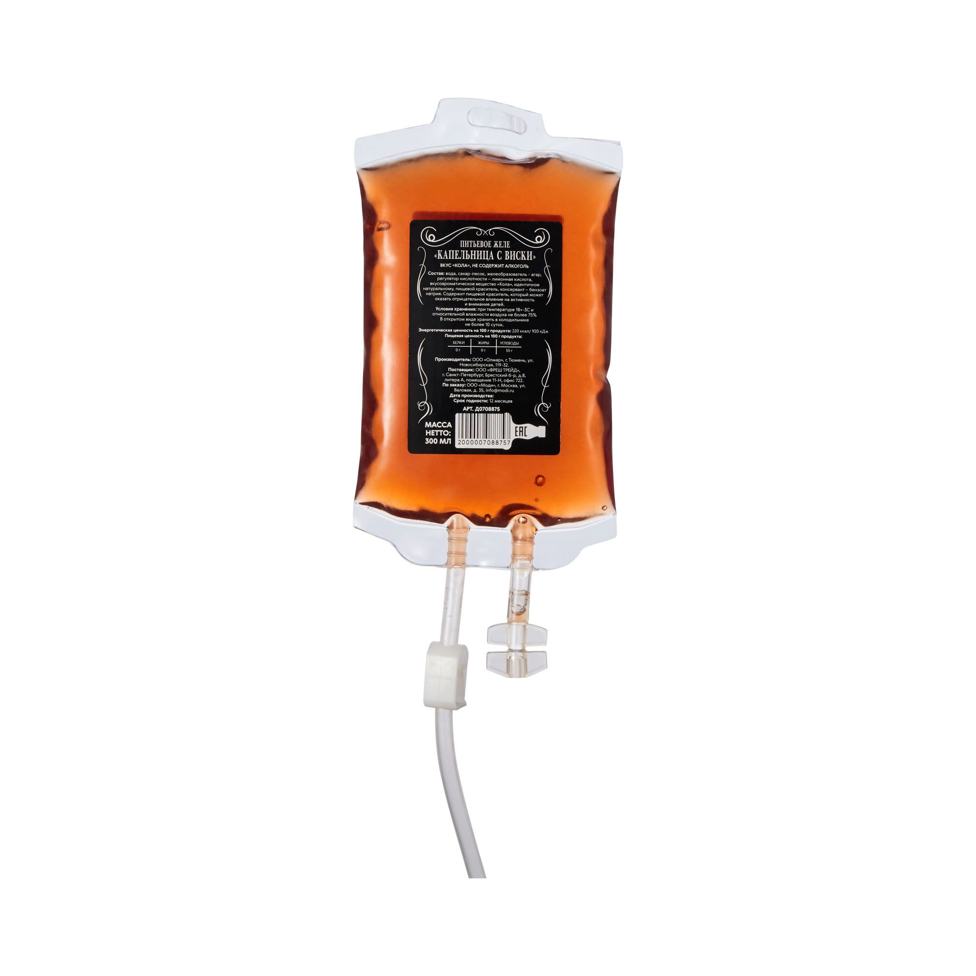 вода, сахар-песок, желеобразователь - агар, регулятор кислотности – лимонная кислота, вкусоароматическое вещество «Кола», идентичное натуральному, пищевой краситель, консервант – бензоат натрия.