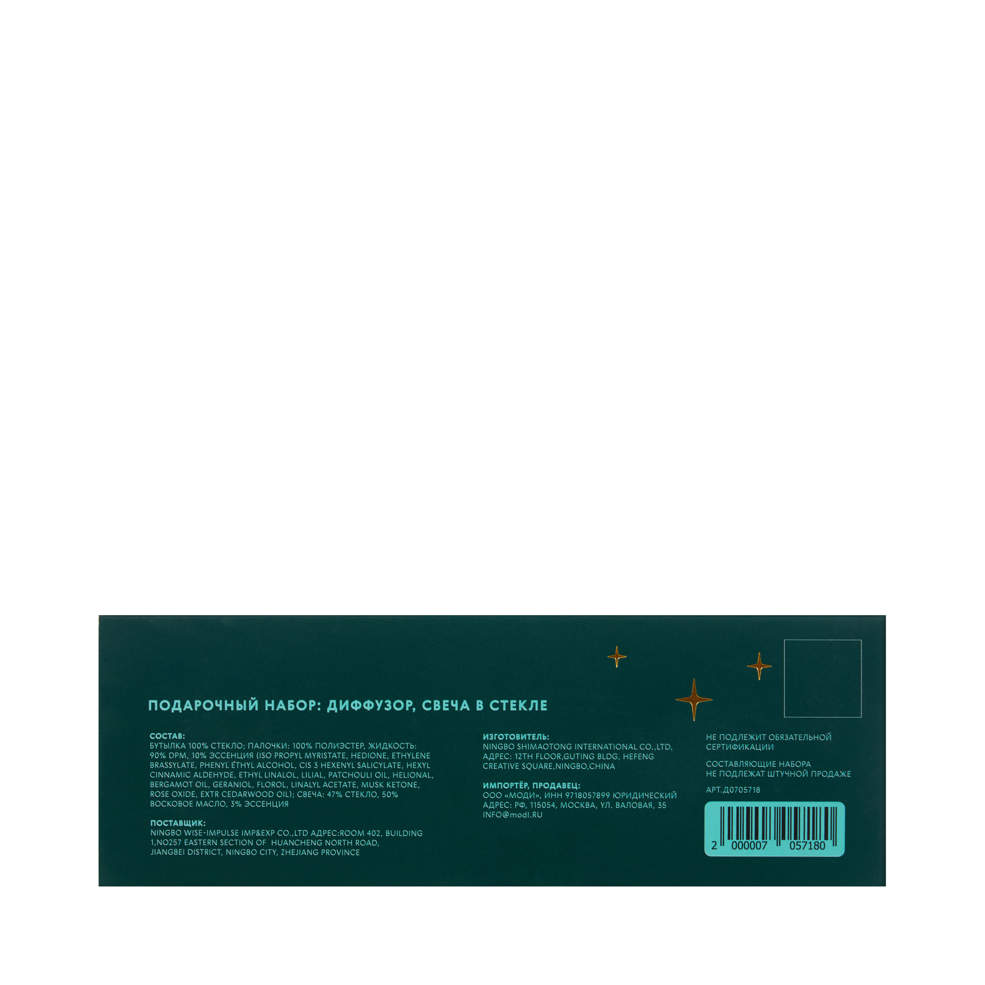 Бутылка-100%стекло,¶палочки - 100% полиэстер¶ жидкость -90% 90%DPM+10% эссенция:ISO PROPYL MYRISTATE,HEDIONE,ETHYLENE BRASSYLATE,PHENYL ETHYL ¶ALCOHOL,CIS 3 HEXENYL SALICYLATE,HEXYL CINNAMIC ALDEHYDE,ETHYL LINALOL,LILIAL,PATCHOULI OIL,HELIONAL,BERGAMOT OIL,GERANIOL,FLOROL,LINALYL ACETATE,MUSK KETONE,ROSE OXIDE,EXTR CEDARWOOD OIL свеча:47% стекло, 50% восковое масло, 3% эссенция