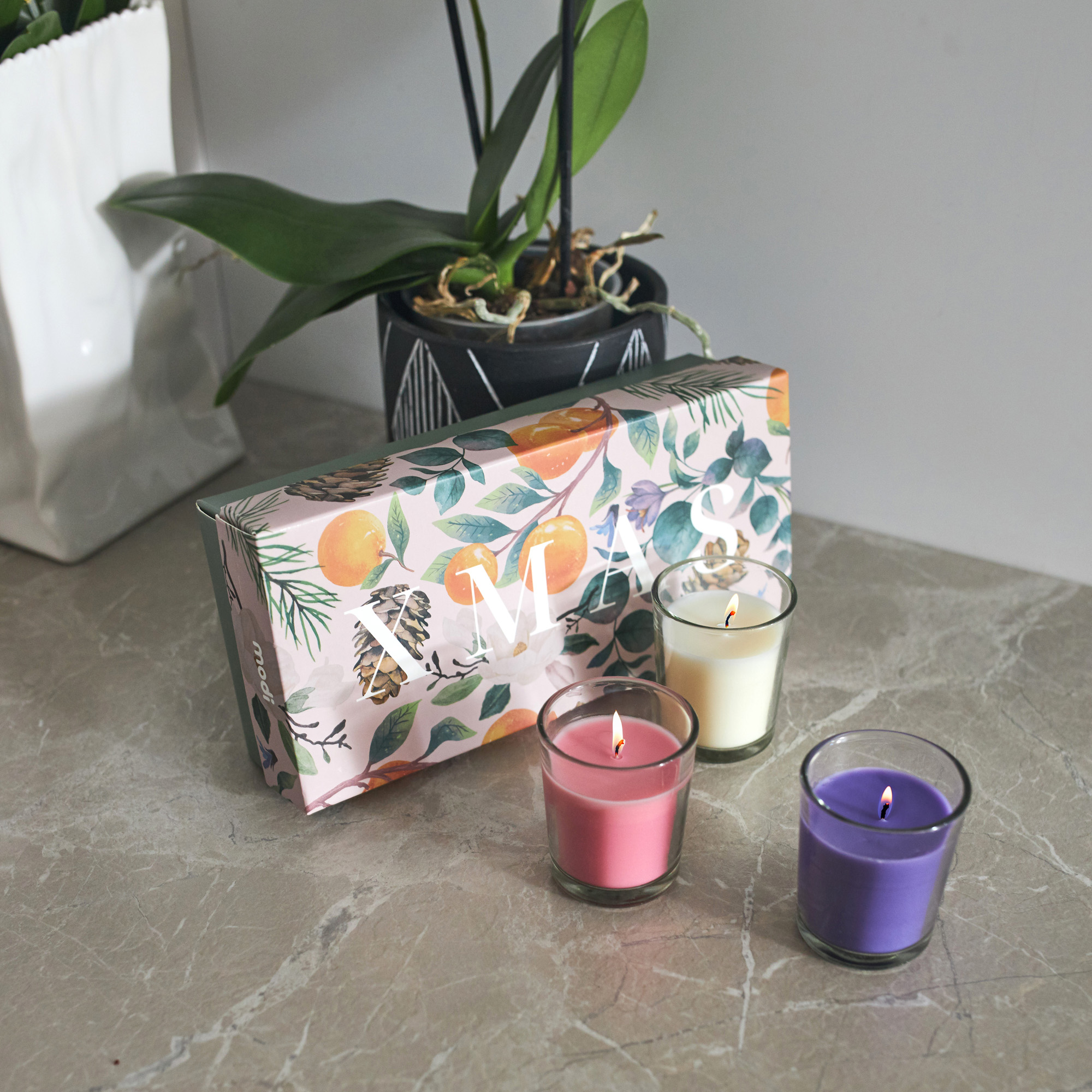 коробка: 22*10,5*5,5 см, свеча: 5*6 см