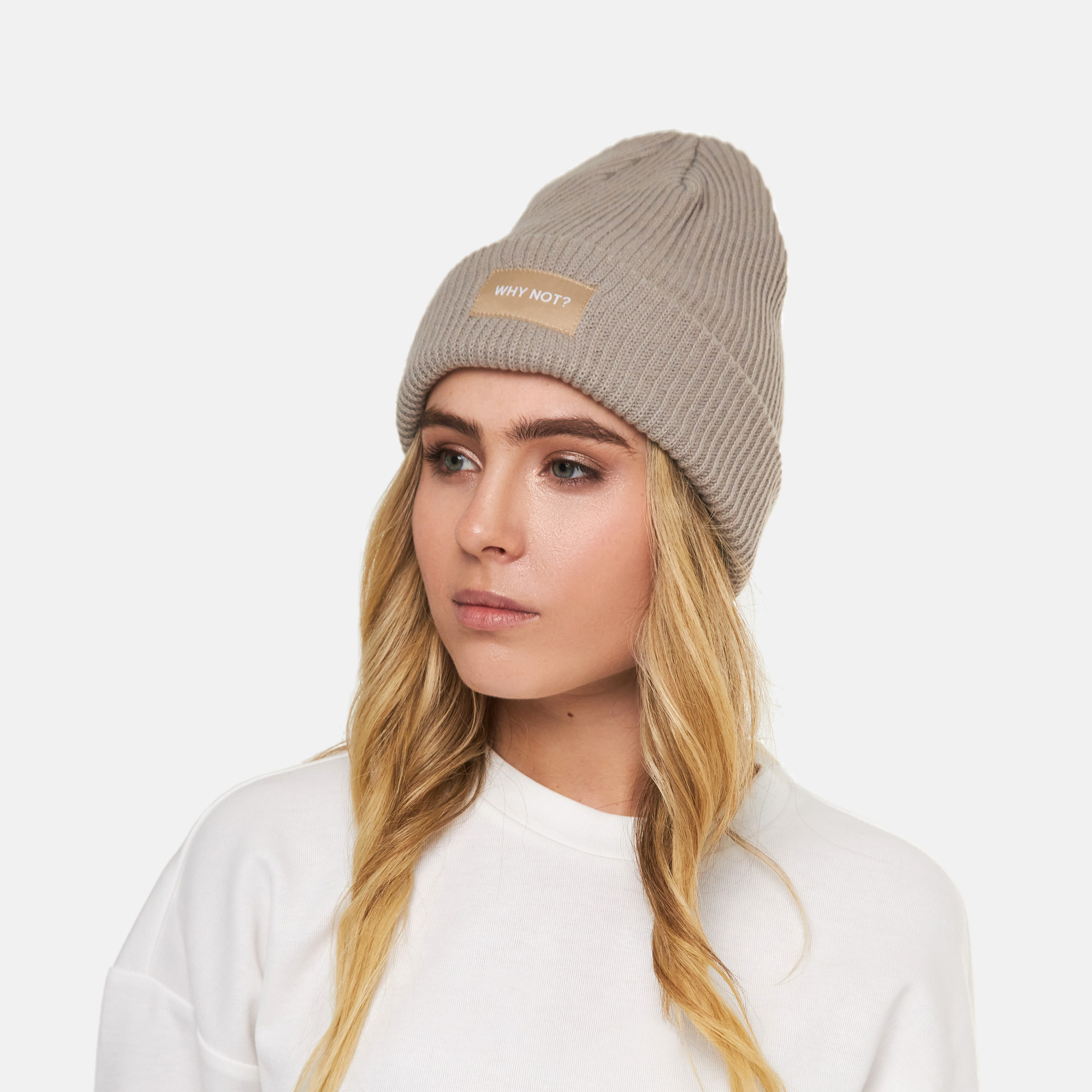 Шапка рельефной вязки Why not, серо-бежевая