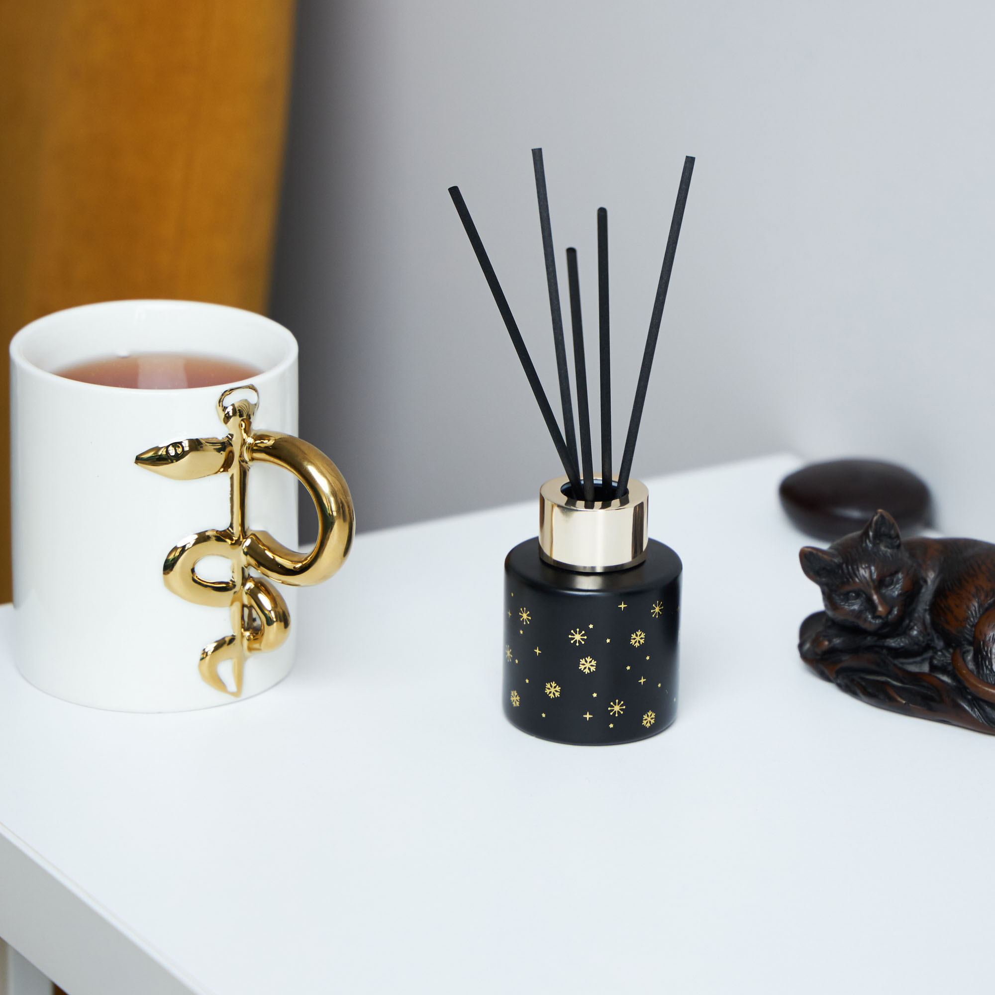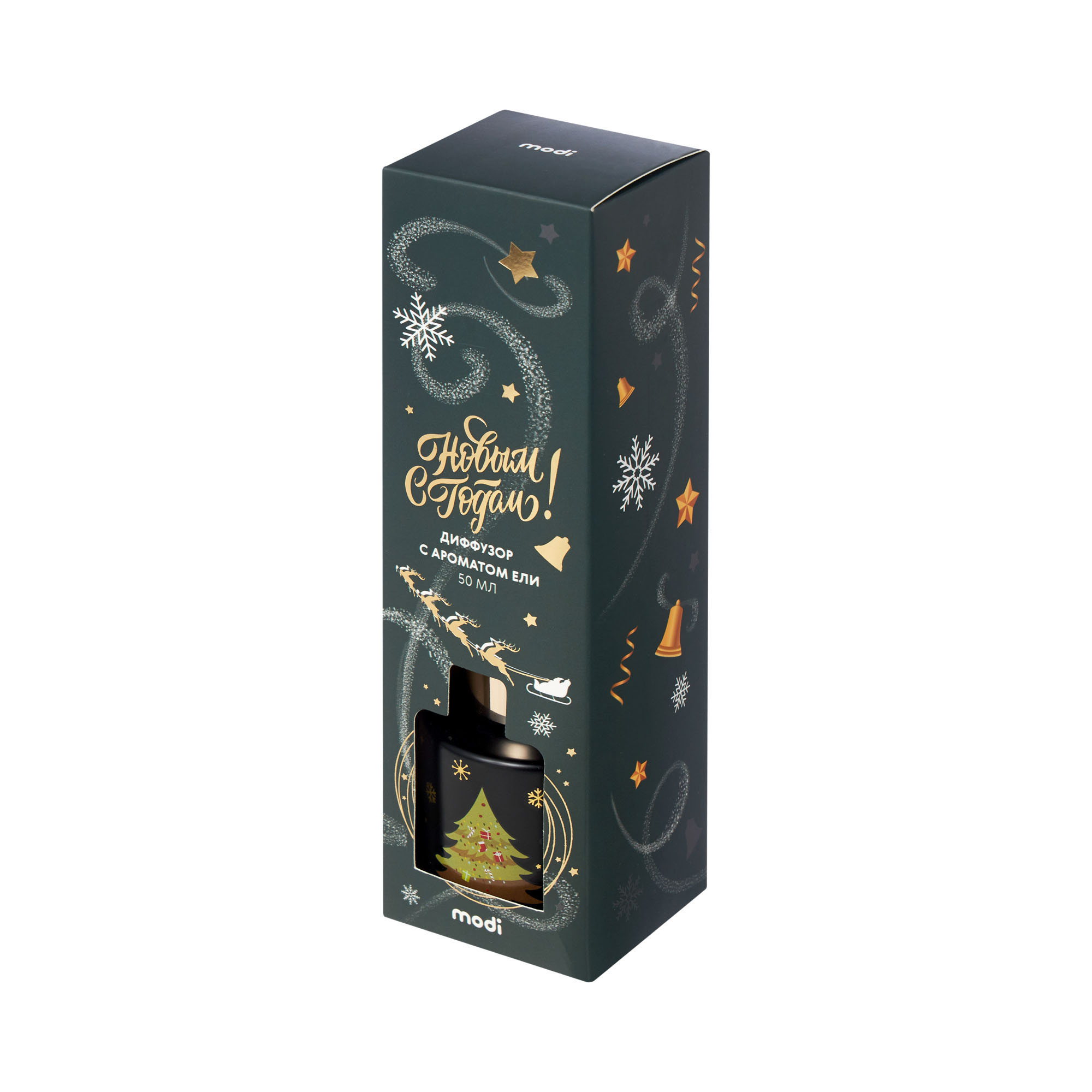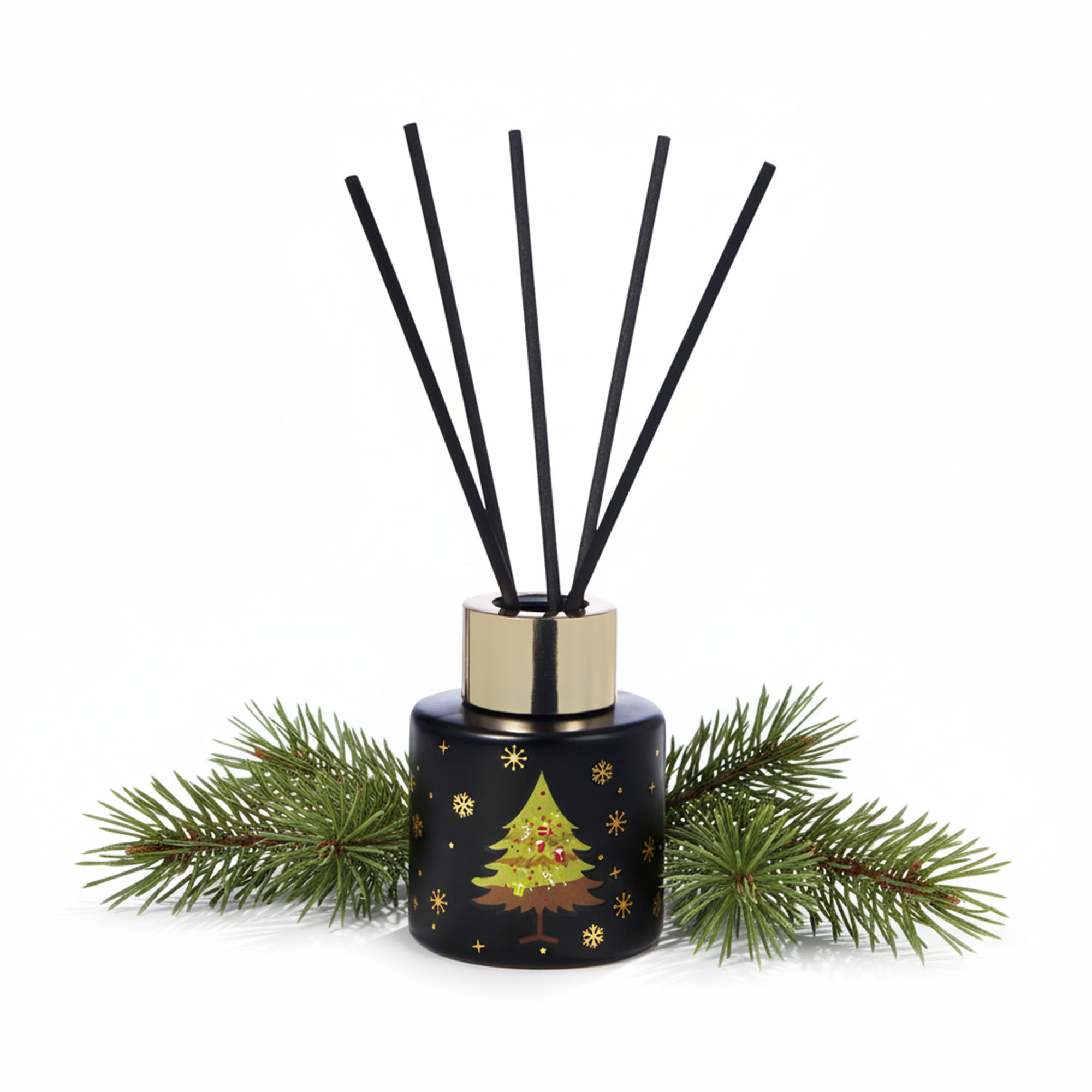 Роскошный диффузор с хвойным ароматом в чёрном флакончике с золотой крышкой — лучший способ создать зимнее настроение. Блестящие элементы дизайна и ажурные снежинки на емкости превращают его в стильный предмет интерьера. Поставьте диффузор в зоне отдыха — аромат свежей хвои поможет расслабиться после напряжённого трудового или учебного дня. У рабочего места он поддержит концентрацию, а в спальне — подарит ощущение прогулки по свежему зимнему лесу. Элегантная чёрная упаковка с золотым декором делает диффузор классным подарком для ценителей премиального дизайна. Объёма 50 мл хватит надолго — свежий хвойный аромат будет радовать вас даже после новогодних праздников!