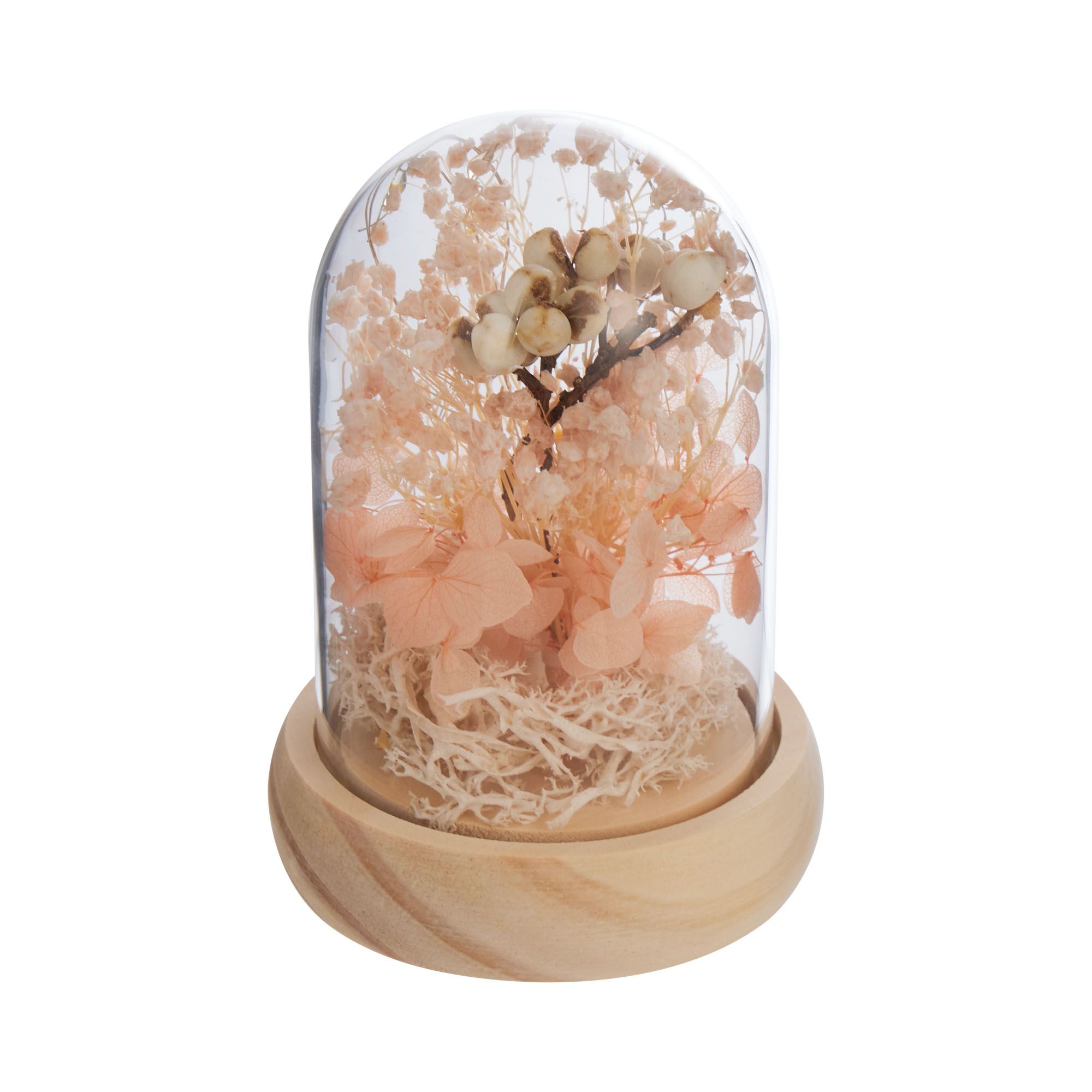 40% сухоцветы, 40% стекло, 20% дерево, LED, 3 батарейки AG10 (входят в комплект)