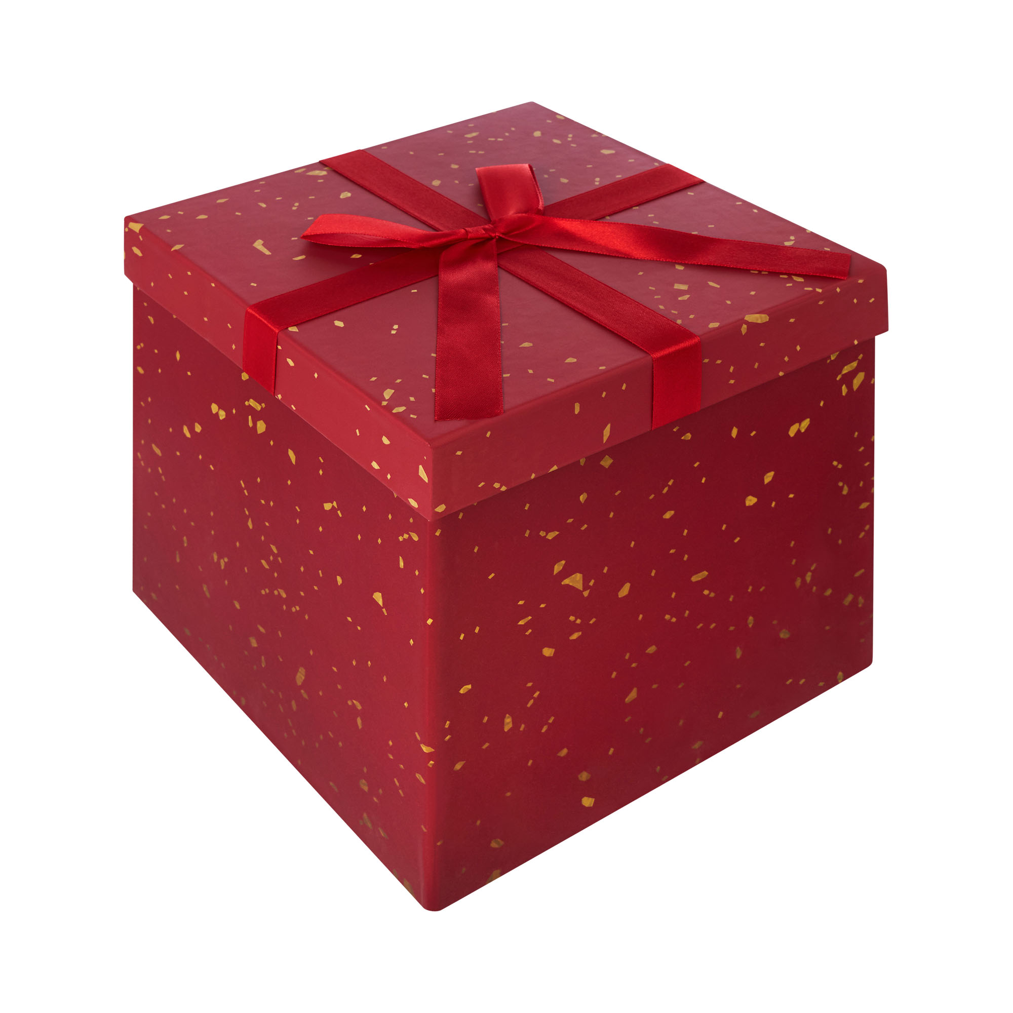 Роскошный кубический подарочный бокс — воплощение праздничной элегантности! Глубокий красный цвет, украшенный деликатным золотым напылением, создаёт эффект звёздной пыли на бархате. Атласный бант того же оттенка завершает безупречную композицию. Размер подходит для объёмных подарков, а кубическая форма позволяет красиво расположить коробку под ёлкой или использовать как часть праздничного декора. Прочный материал и продуманная конструкция гарантируют сохранность даже хрупких подарков. Упаковка, достойная самого классного сюрприза!