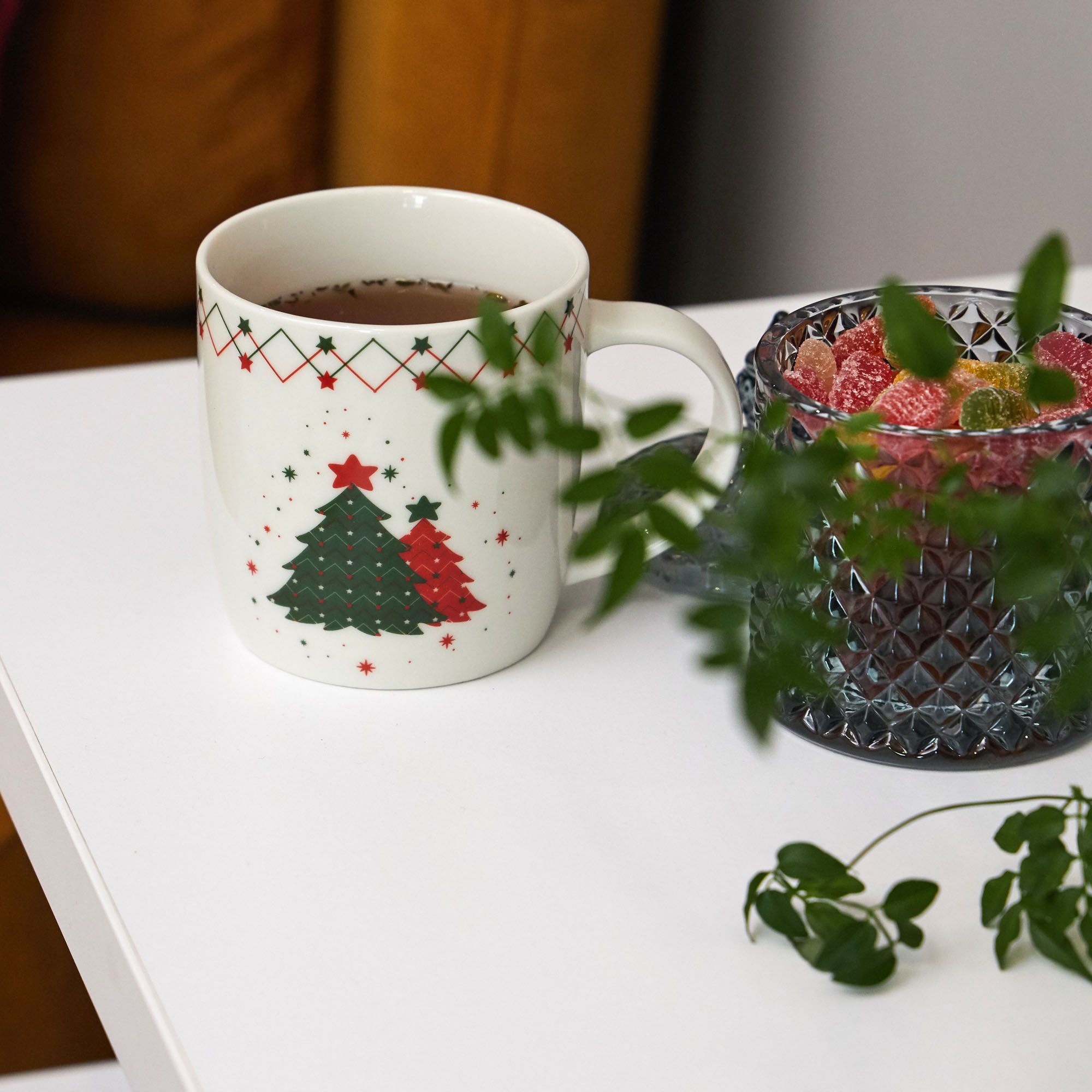 Вместительная кружка 400 мл с праздничным дизайном — находка для истинных ценителей горячих напитков! На белоснежном фоне красуется пушистая ель со звездой, обрамлённая гирляндами красного и зелёного цвета. Большой объём идеален для какао с маршмеллоу или согревающего глинтвейна. В продаже также варианты с двумя ёлочками или любимыми новогодними персонажами — Дедом Морозом и снеговиком. Удобная ручка не нагревается, а качественная печать сохраняет яркость рисунка на долгие годы! Покупайте себе, коллегам, родне. Создавайте праздничное настроение прямо сейчас, не дожидаясь лучшего момента!