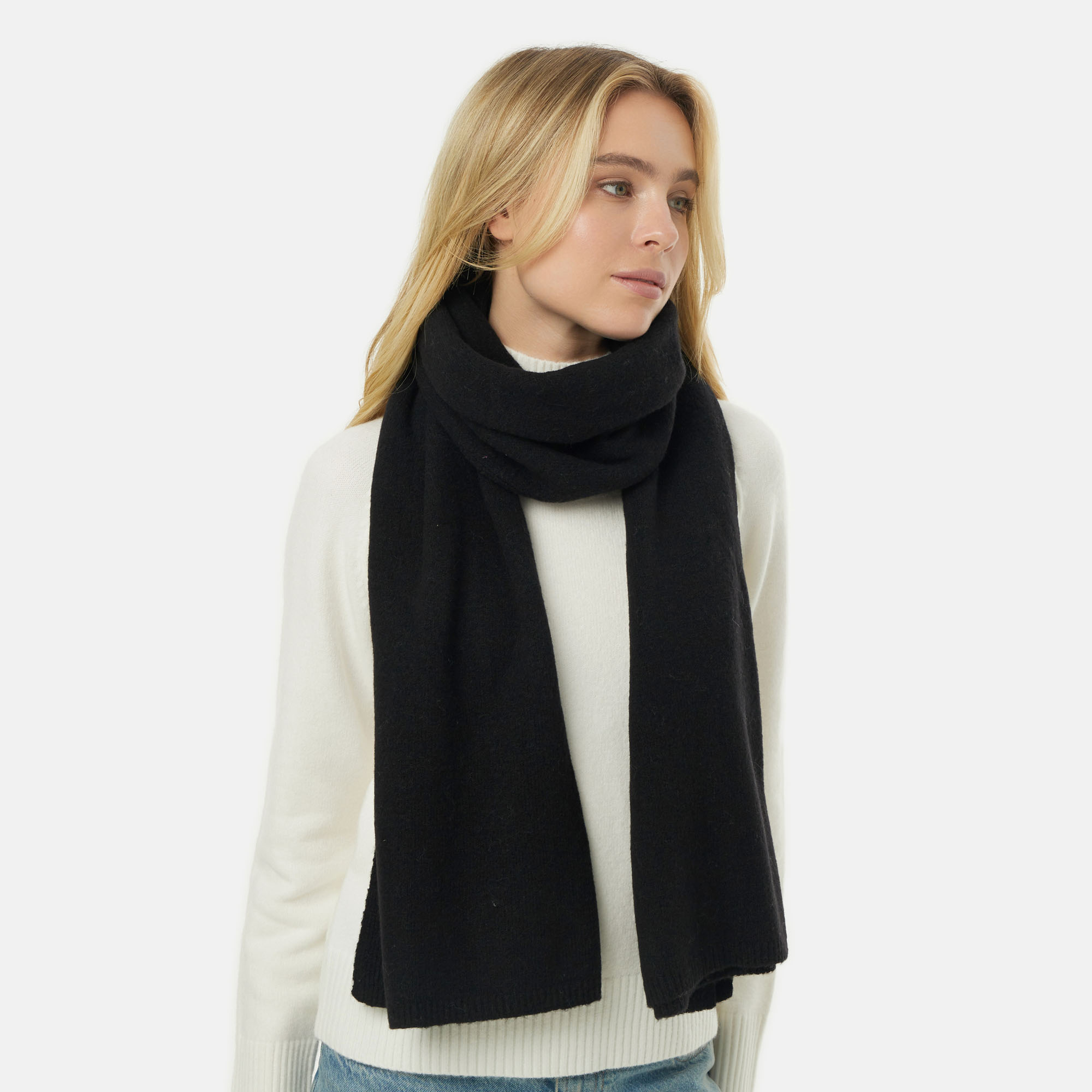 Чёрный вязаный шарф — незаменимый аксессуар для защиты от холода. Размер 60 x 200 см подходит для разнообразных способов ношения: классическое обертывание, французская петля или небрежное драпирование. 100% акрил обеспечивает мягкость, тепло и легкость ухода — машинная стирка без потери формы изделия.
