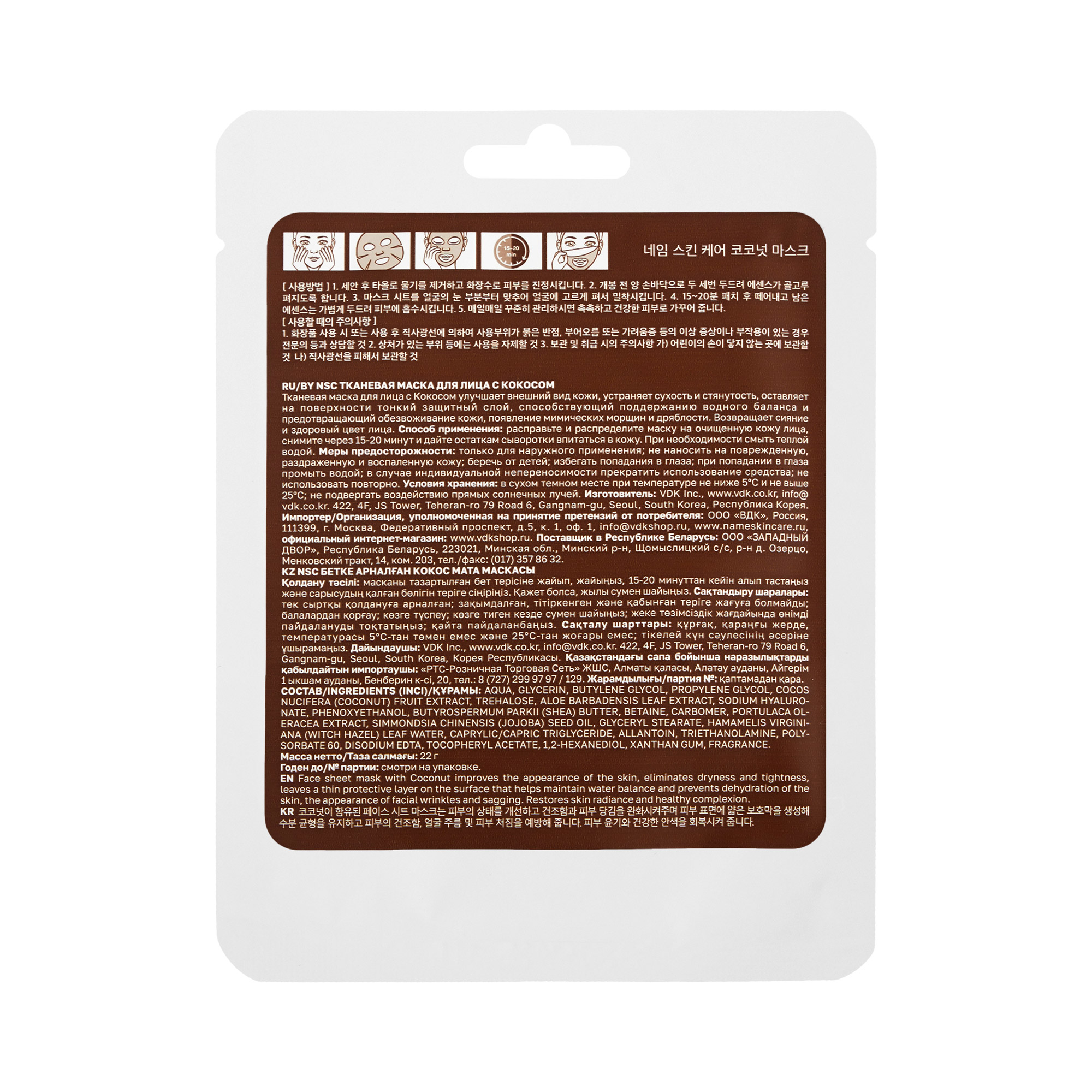 Тканевая маска для лица Кокос